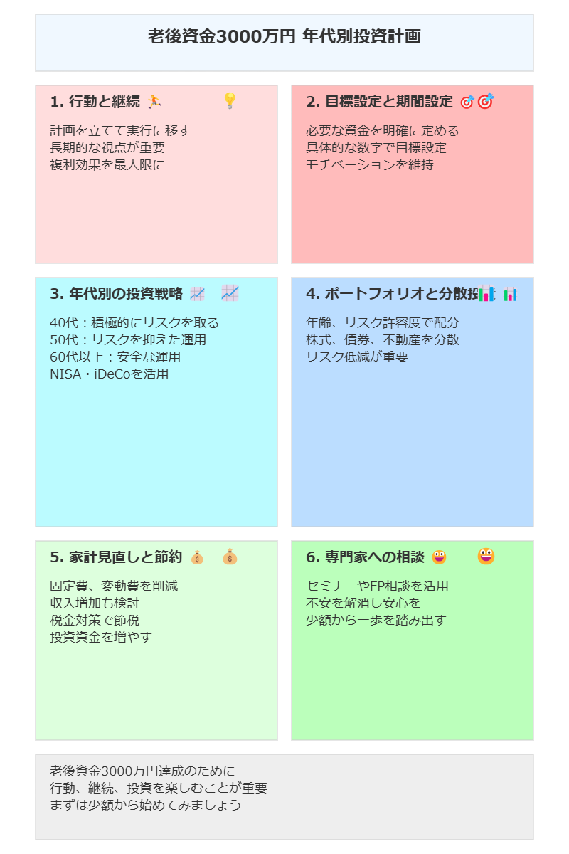 特に重要なのは、各年代のリスク許容度に応じた適切な投資戦略を立て、ポートフォリオを最適化することです。